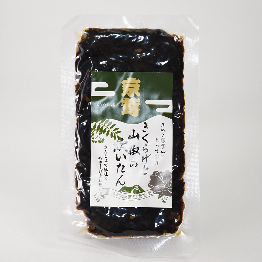 原材料:乾燥きくらげ(京都府産)、醤油(一部に大豆・小麦含む)、清酒、砂糖、中双糖、実山椒(国産)、食塩